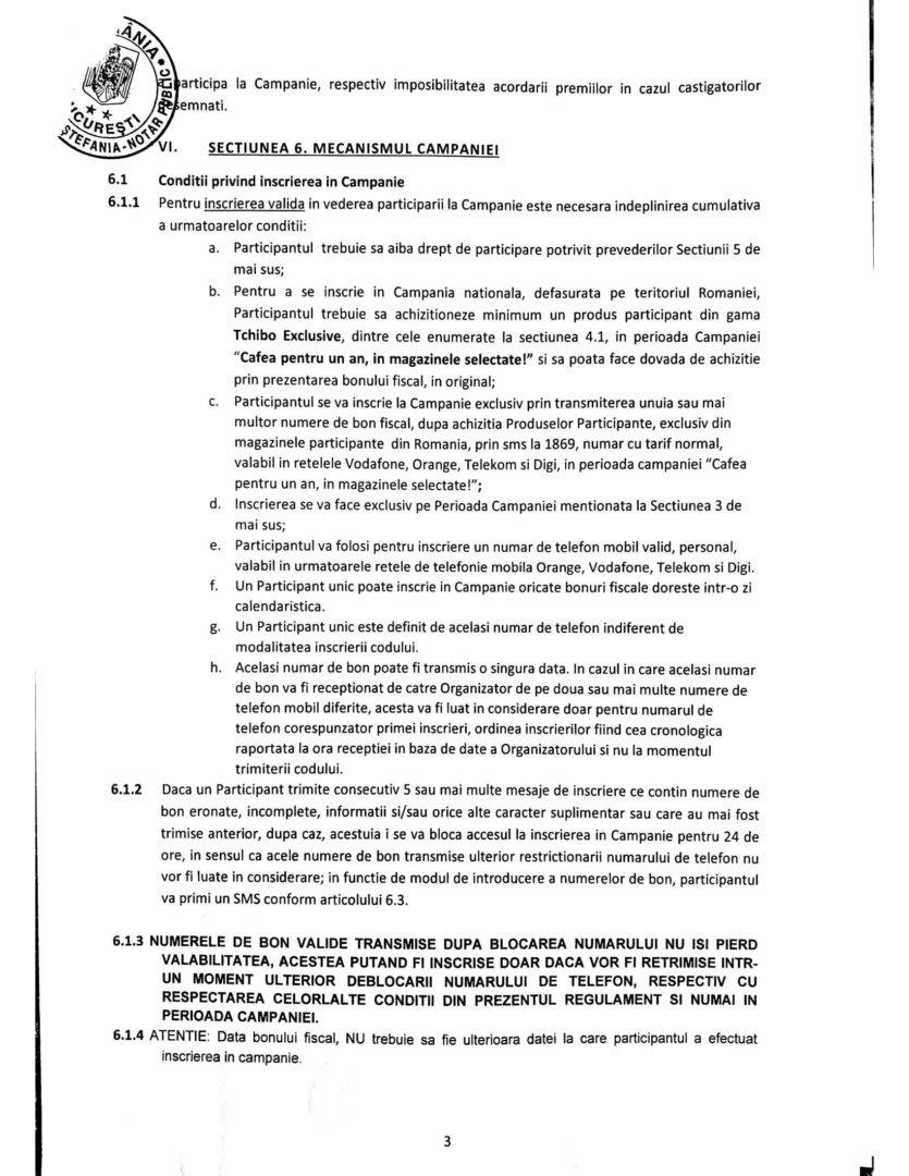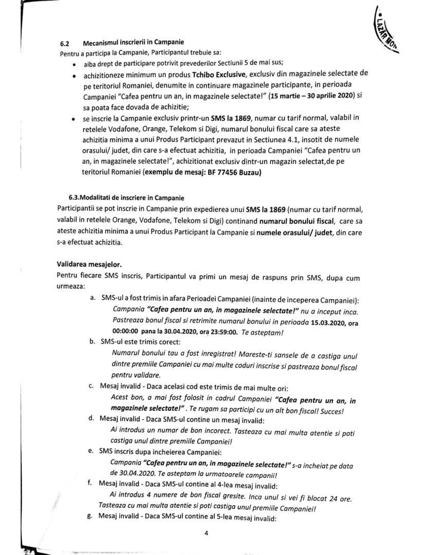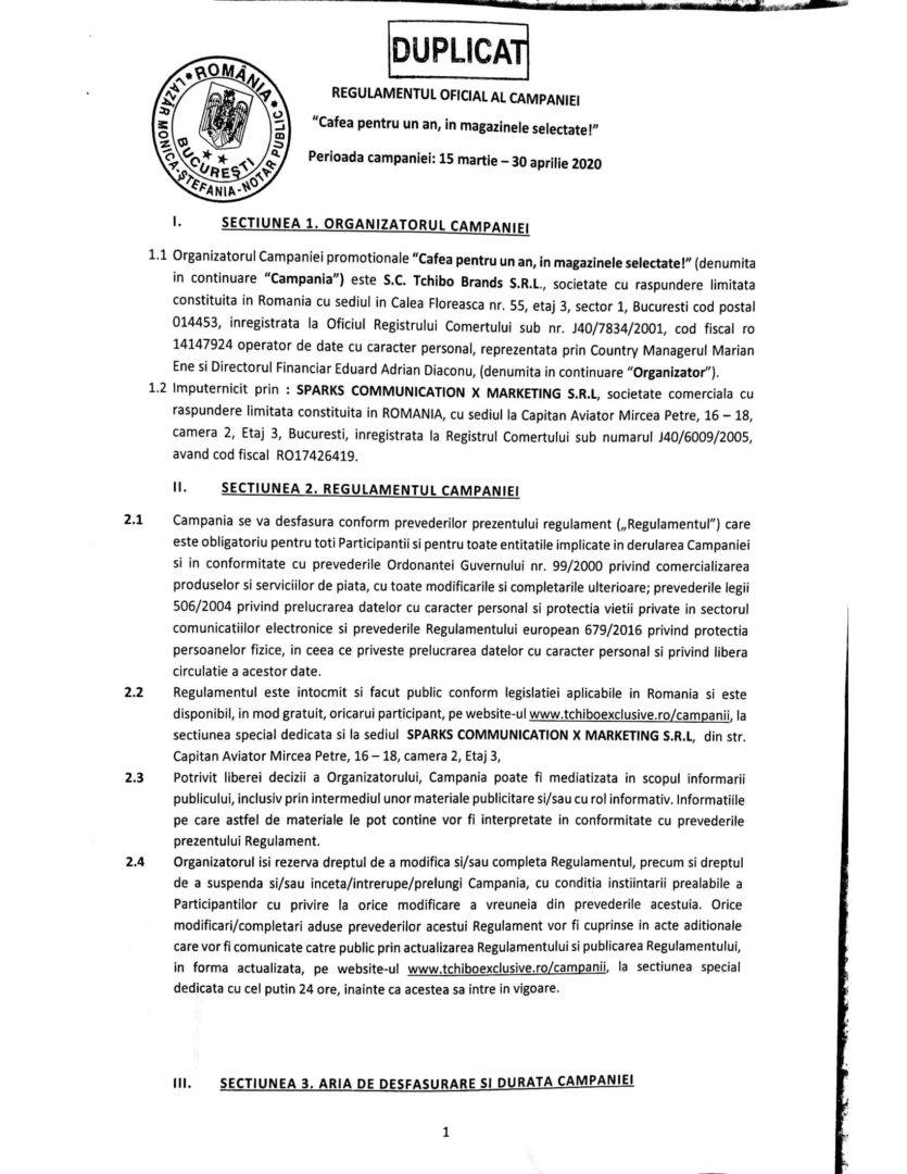Regulamentul concursului ”Cafea pentru un an”